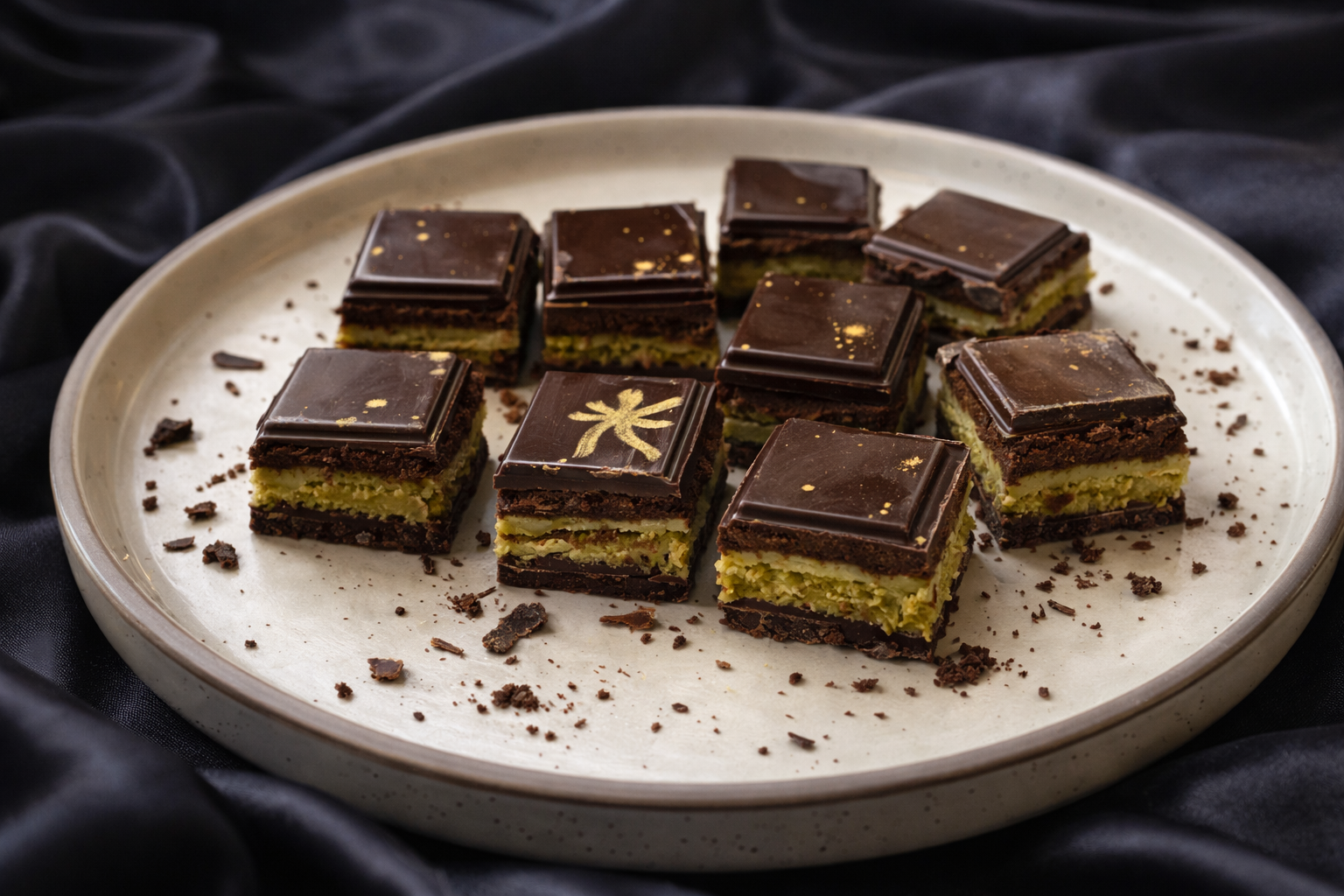 Dark couverture gives way to layered pistachio praline, smooth pistachio cream and white ganache and a delicate kataifi crunch. Each bite moves from rich cocoa to nutty warmth, with subtle caramelised notes that linger without heaviness.